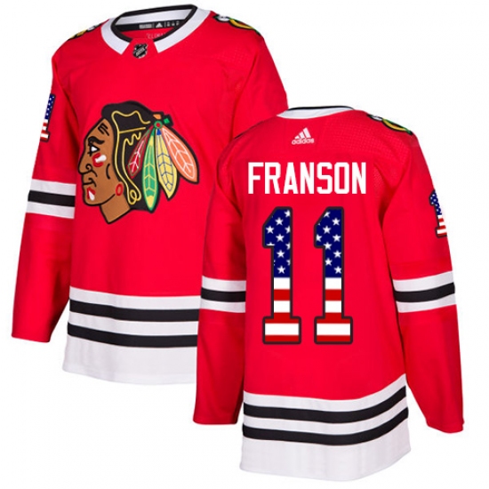 Home>NHL>Chicago Blackhawks>Cody Franson>Men's Adidas Chicago Blackhawks #11 Cody Franson Authentic Red USA Flag Fashion NHL Jersey