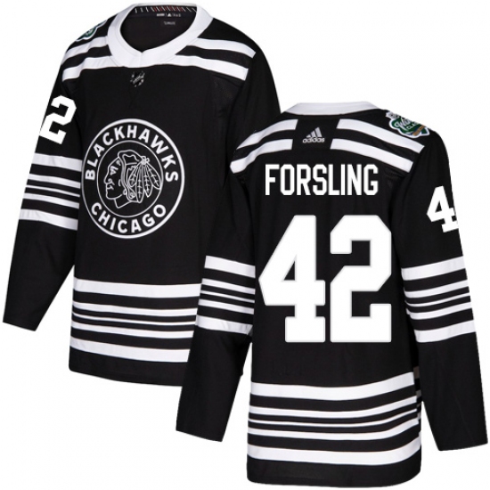 Men's Adidas Chicago Blackhawks #42 Gustav Forsling Authentic Black 2019 Winter Classic NHL Jersey