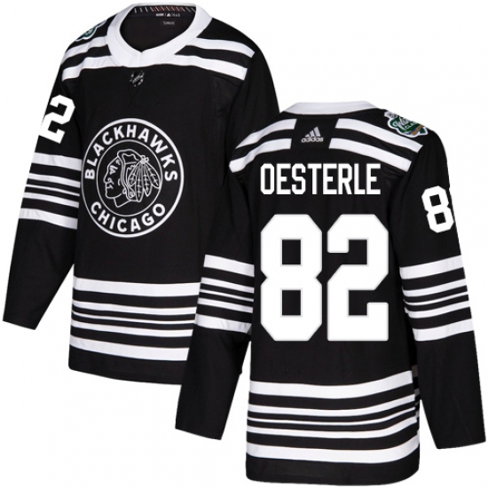 Men's Adidas Chicago Blackhawks #82 Jordan Oesterle Authentic Black 2019 Winter Classic NHL Jersey