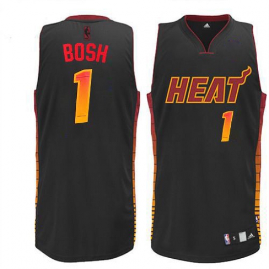 Men's Adidas Miami Heat #1 Chris Bosh Authentic Black Vibe NBA Jersey