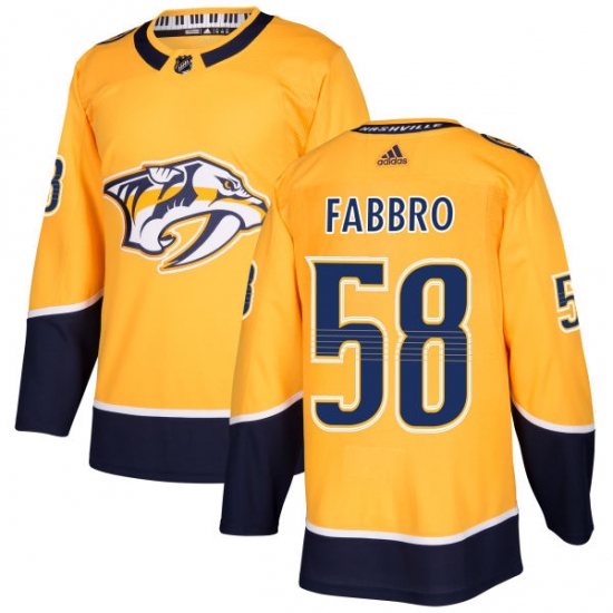 Home>NHL>Nashville Predators>Dante Fabbro>Men's Adidas Nashville Predators #58 Dante Fabbro Authentic Gold Home NHL Jersey