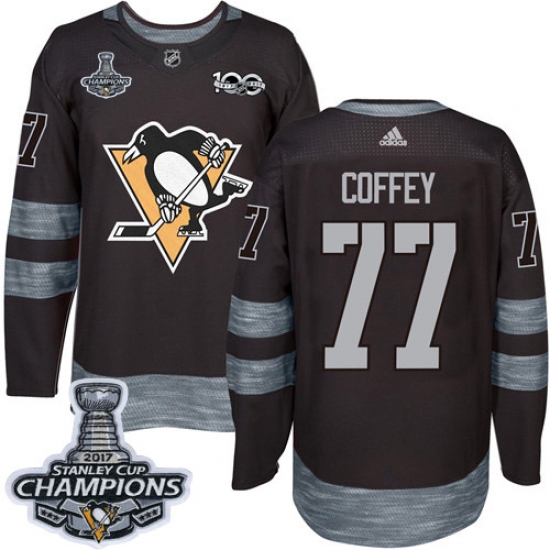 Home>NHL>Pittsburgh Penguins>Paul Coffey>Men's Adidas Pittsburgh Penguins #77 Paul Coffey Authentic Black 1917-2017 100th Anniversary 2017 Stanley Cup Champions NHL Jersey