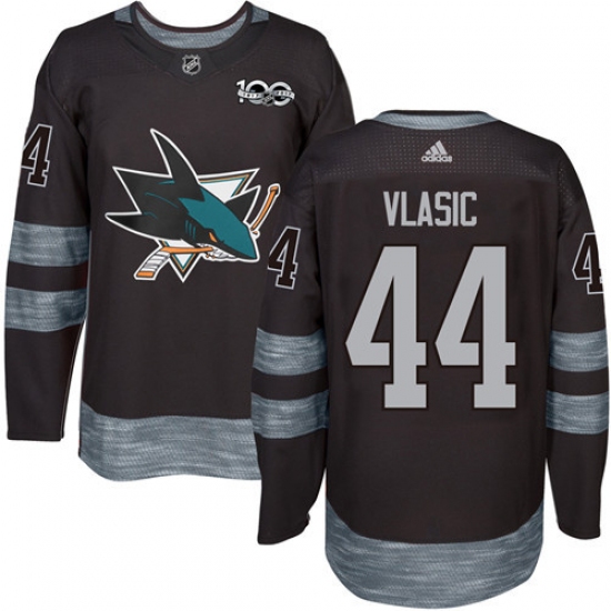 Men's Adidas San Jose Sharks #44 Marc-Edouard Vlasic Premier Black 1917-2017 100th Anniversary NHL Jersey