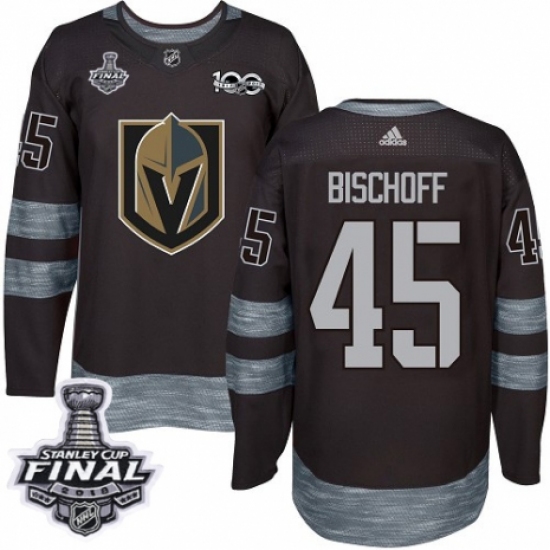 >Men's Adidas Vegas Golden Knights #45 Jake Bischoff Authentic Black 1917-2017 100th Anniversary 2018 Stanley Cup Final NHL Jersey