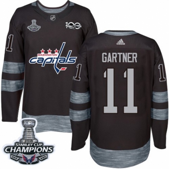 Men's Adidas Washington Capitals #11 Mike Gartner Authentic Black 1917-2017 100th Anniversary 2018 Stanley Cup Final Champions NHL Jersey