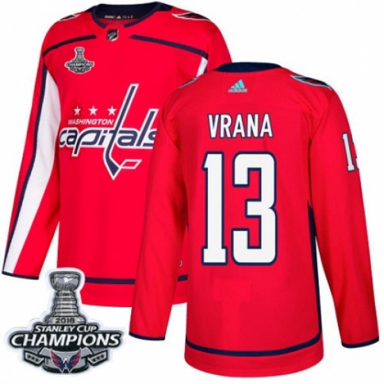 Men's Adidas Washington Capitals #13 Jakub Vrana Premier Red Home 2018 Stanley Cup Final Champions NHL Jersey