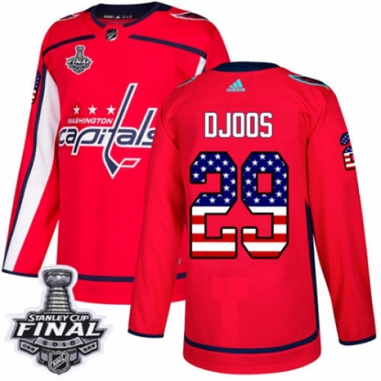Men's Adidas Washington Capitals #29 Christian Djoos Authentic Red USA Flag Fashion 2018 Stanley Cup Final NHL Jersey