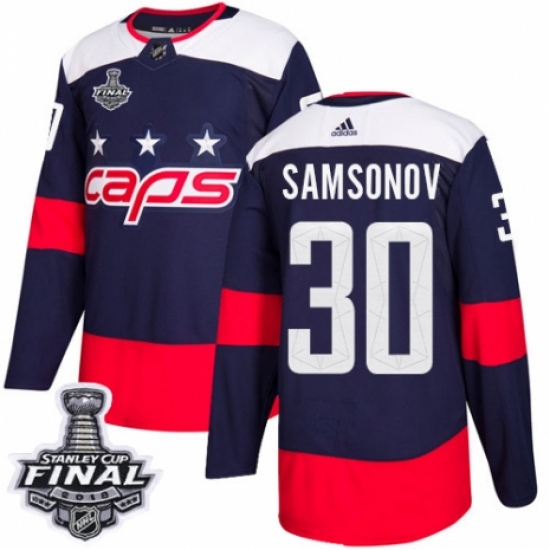 Men's Adidas Washington Capitals #30 Ilya Samsonov Authentic Navy Blue 2018 Stadium Series 2018 Stanley Cup Final NHL Jersey