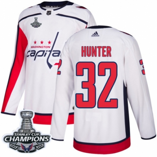 Men's Adidas Washington Capitals #32 Dale Hunter Authentic White Away 2018 Stanley Cup Final Champions NHL Jersey