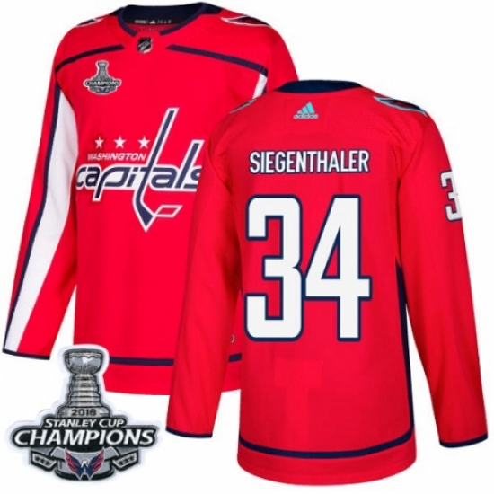 Men's Adidas Washington Capitals #34 Jonas Siegenthaler Authentic Red Home 2018 Stanley Cup Final Champions NHL Jersey