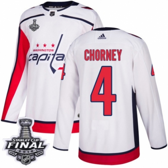 Men's Adidas Washington Capitals #4 Taylor Chorney Authentic White Away 2018 Stanley Cup Final NHL Jersey