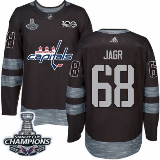 Men's Adidas Washington Capitals #68 Jaromir Jagr Authentic Black 1917-2017 100th Anniversary 2018 Stanley Cup Final Champions NHL Jersey