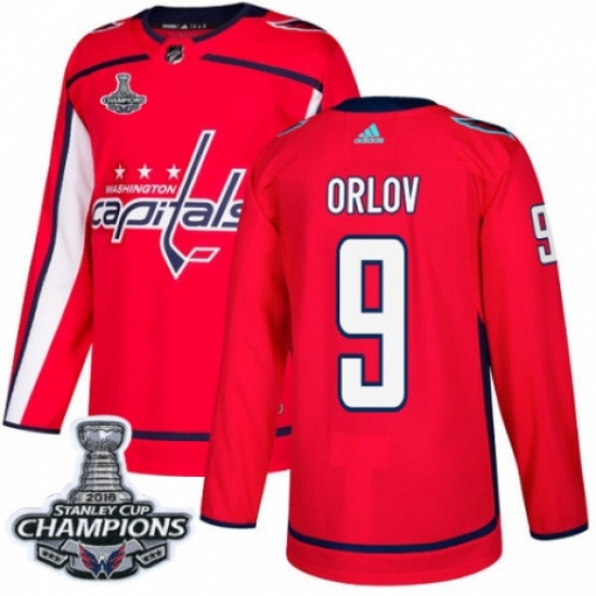 Men's Adidas Washington Capitals #9 Dmitry Orlov Authentic Red Home 2018 Stanley Cup Final Champions NHL Jersey