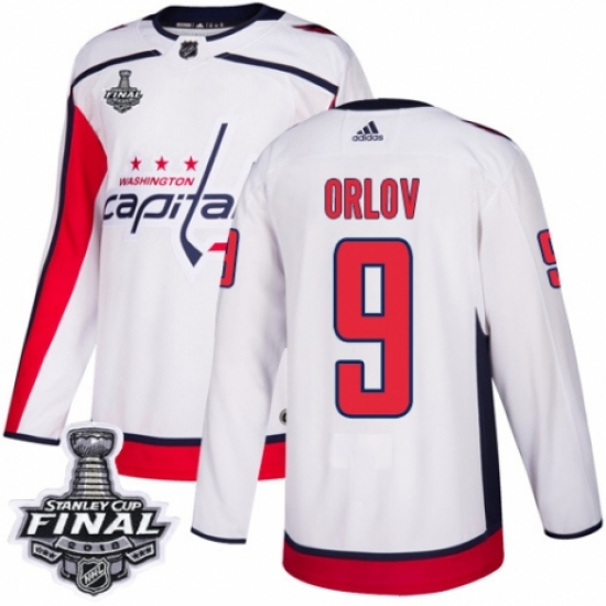 Men's Adidas Washington Capitals #9 Dmitry Orlov Authentic White Away 2018 Stanley Cup Final NHL Jersey