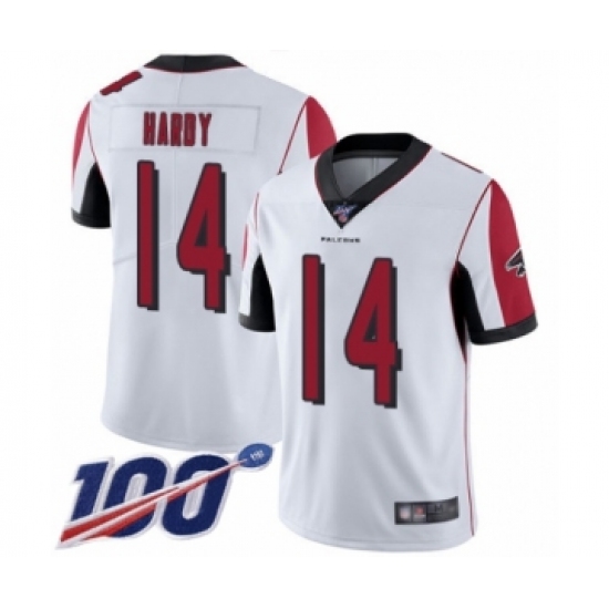 Men's Atlanta Falcons #14 Justin Hardy White Vapor Untouchable Limited Player 100th Season Football Jersey