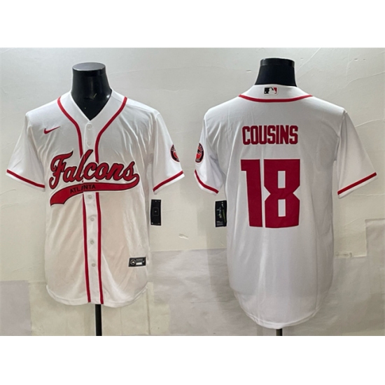 >Men's Atlanta Falcons #18 Kirk Cousins White With Cool Base Stitched Baseball Jersey