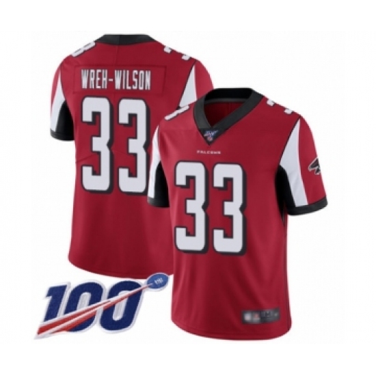 Men's Atlanta Falcons #33 Blidi Wreh-Wilson Red Team Color Vapor Untouchable Limited Player 100th Season Football Jersey