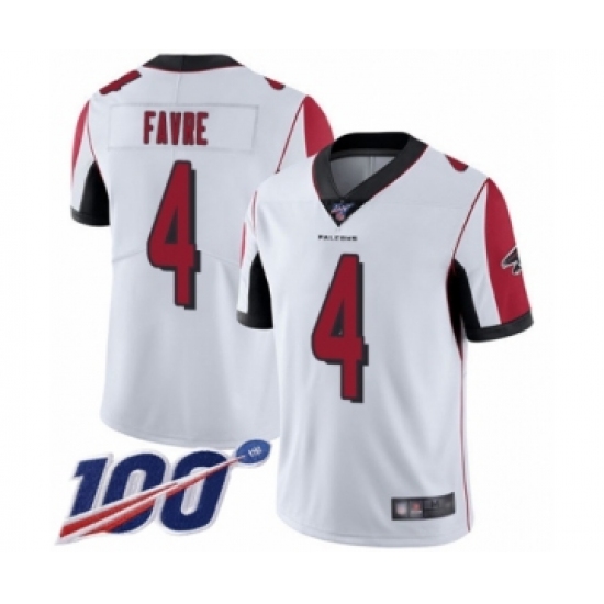 Men's Atlanta Falcons #4 Brett Favre White Vapor Untouchable Limited Player 100th Season Football Jersey