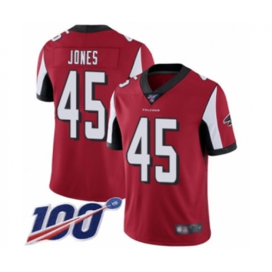 >Men's Atlanta Falcons #45 Deion Jones Red Team Color Vapor Untouchable Limited Player 100th Season Football Jersey