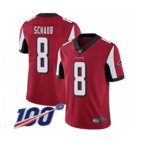 >Men's Atlanta Falcons #8 Matt Schaub Red Team Color Vapor Untouchable Limited Player 100th Season Football Jersey