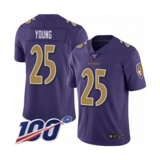 Men's Baltimore Ravens #25 Tavon Young Limited Purple Rush Vapor Untouchable 100th Season Football Jersey