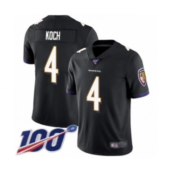 Men's Baltimore Ravens #4 Sam Koch Black Alternate Vapor Untouchable Limited Player 100th Season Football Jersey