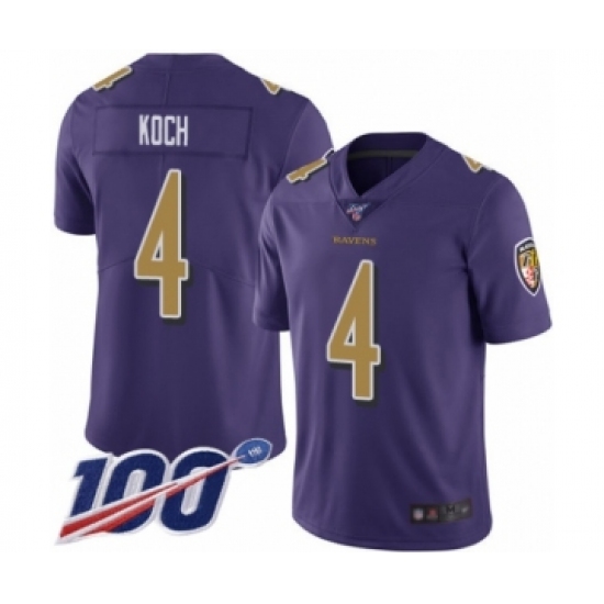 Men's Baltimore Ravens #4 Sam Koch Limited Purple Rush Vapor Untouchable 100th Season Football Jersey