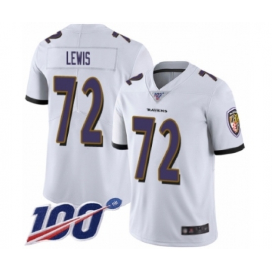 Men's Baltimore Ravens #72 Alex Lewis White Vapor Untouchable Limited Player 100th Season Football Jersey