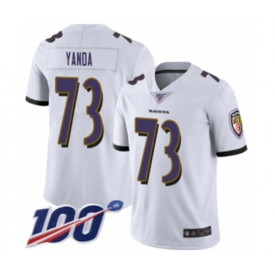 Men's Baltimore Ravens #73 Marshal Yanda White Vapor Untouchable Limited Player 100th Season Football Jersey