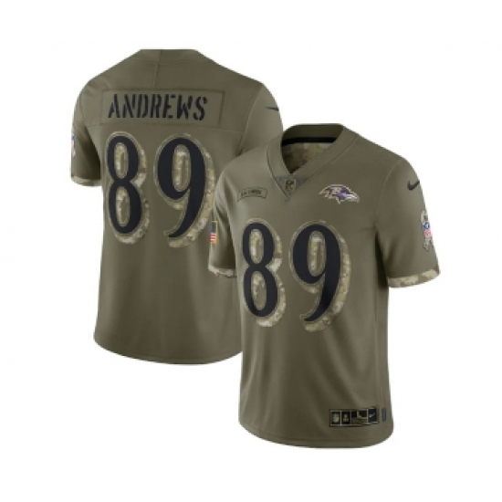 Men's Baltimore Ravens #89 Mark Andrews 2022 Olive Salute To Service Limited Stitched Jersey