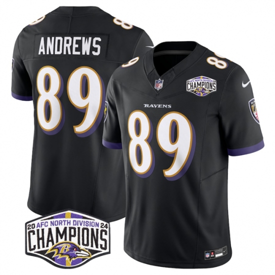 >Men's Baltimore Ravens #89 Mark Andrews Black F.U.S.E 2024 AFC North Division Champions Vapor Limited Football Jersey