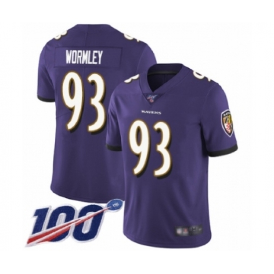 Men's Baltimore Ravens #93 Chris Wormley Purple Team Color Vapor Untouchable Limited Player 100th Season Football Jersey