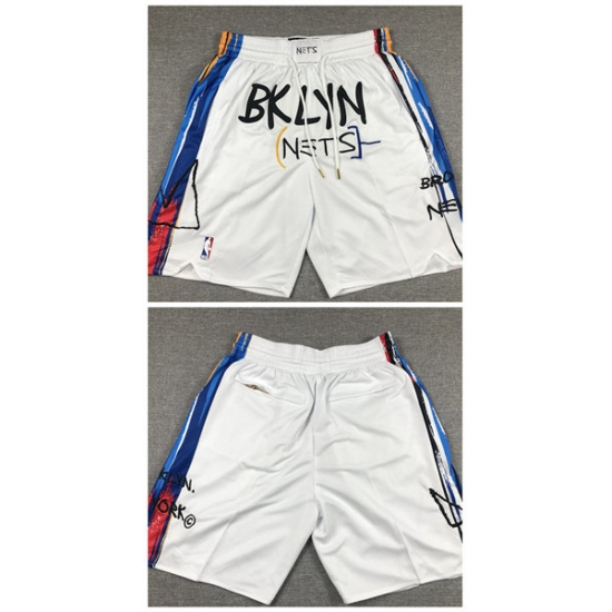 >Mens Brooklyn Nets White Shorts (Run Small)