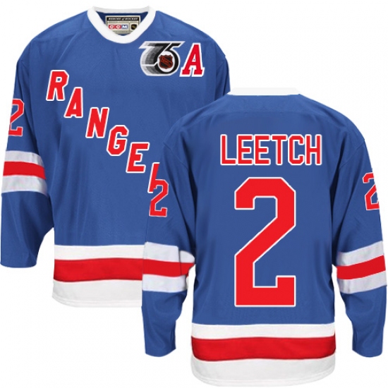 Men's CCM New York Rangers #2 Brian Leetch Premier Royal Blue 75TH Throwback NHL Jersey
