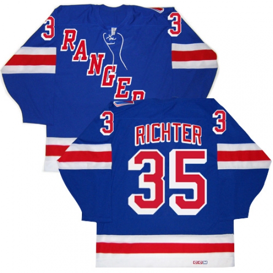 Men's CCM New York Rangers #35 Mike Richter Authentic Royal Blue New Throwback NHL Jersey