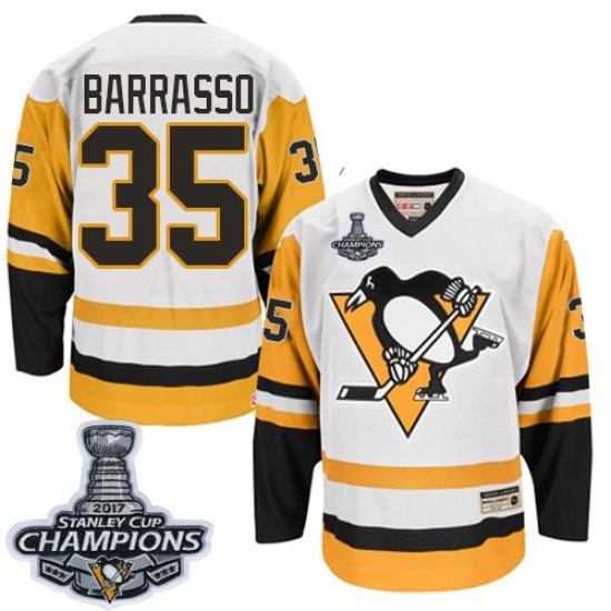 Home>NHL>Pittsburgh Penguins>Tom Barrasso>Men's CCM Pittsburgh Penguins #35 Tom Barrasso Authentic White Throwback 2017 Stanley Cup Champions NHL Jersey