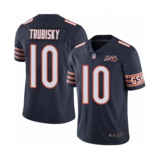 Men's Chicago Bears #10 Mitchell Trubisky Navy Blue Team Color 100th Season Limited Football Jersey