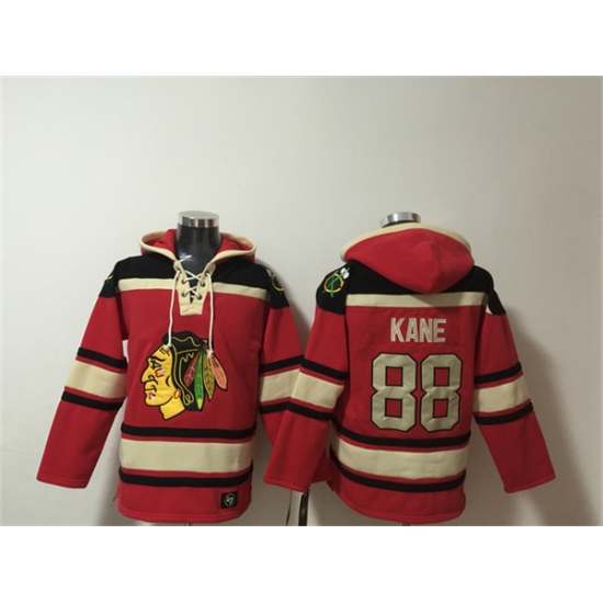 >Men's Chicago Blackhawks #88 Patrick Kane Red Lace-Up Pullover Hoodie