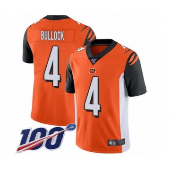 Men's Cincinnati Bengals #4 Randy Bullock Orange Alternate Vapor Untouchable Limited Player 100th Season Football Jersey