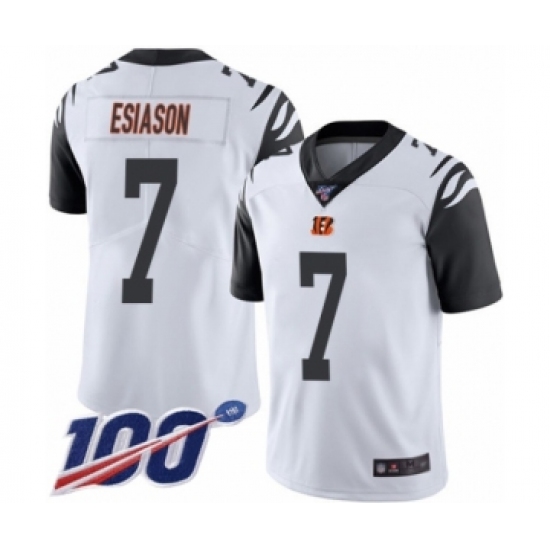 >Men's Cincinnati Bengals #7 Boomer Esiason Limited White Rush Vapor Untouchable 100th Season Football Jersey