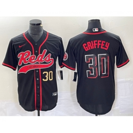 Men's Cincinnati Reds #30 Ken Griffey Jr Black 2023 City Connect Cool Base Stitched Jersey1