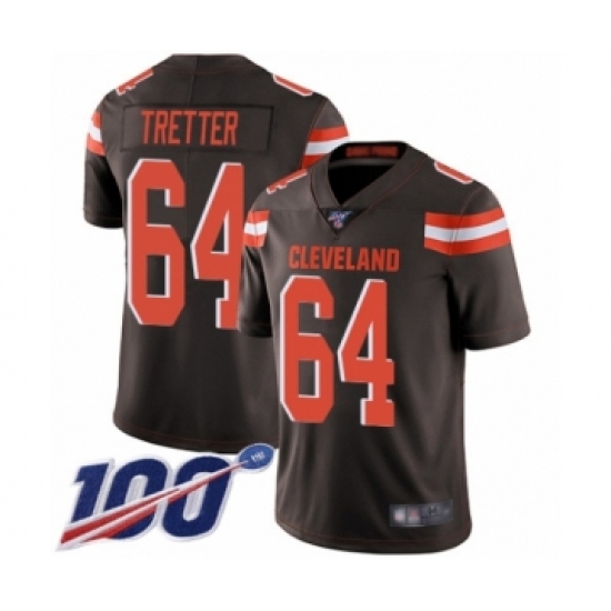 >Men's Cleveland Browns #64 JC Tretter Brown Team Color Vapor Untouchable Limited Player 100th Season Football Jersey