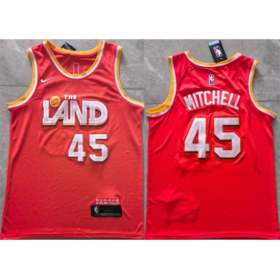>Men's Cleveland Cavaliers #45 Donovan Mitchell Orange 2025-26 CityEdition Stitched Jersey