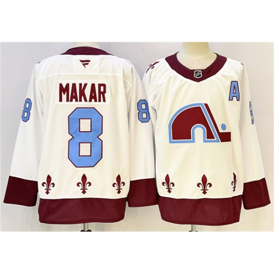 Men's Colorado Avalanche #8 Cale Makar White 2024-25 With A Reverse Retro Stitched Jersey
