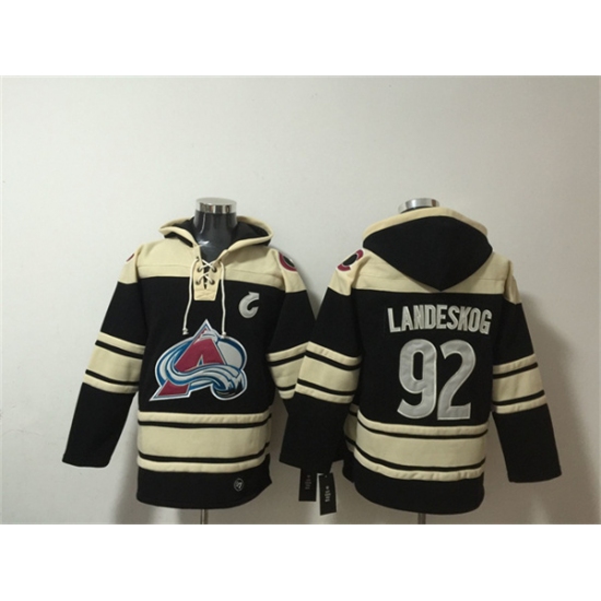 Men's Colorado Avalanche #92 Gabriel Landeskog Black All Stitched Sweatshirt Hoodie