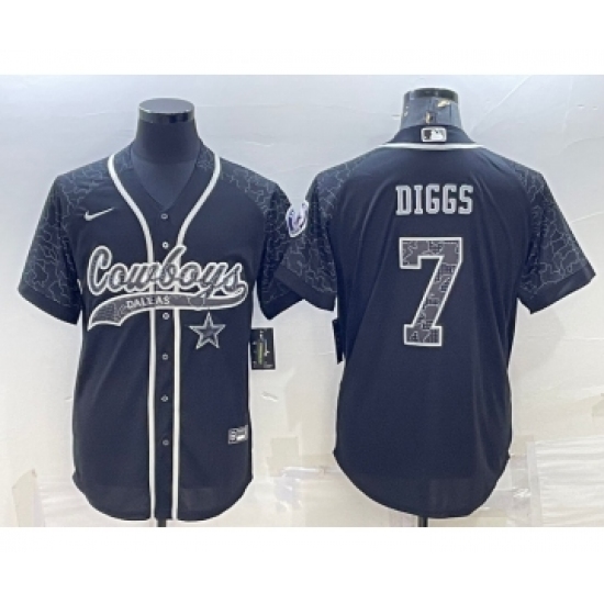 Men's Dallas Cowboys #7 Trevon Diggs Black Reflective With Patch Cool Base Stitched Baseball Jersey