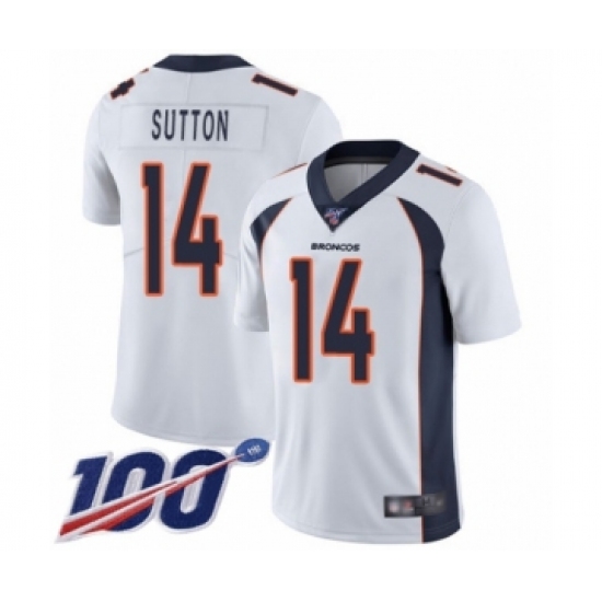 Men's Denver Broncos #14 Courtland Sutton White Vapor Untouchable Limited Player 100th Season Football Jersey