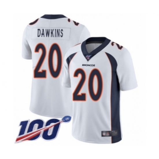 Men's Denver Broncos #20 Brian Dawkins White Vapor Untouchable Limited Player 100th Season Football Jersey