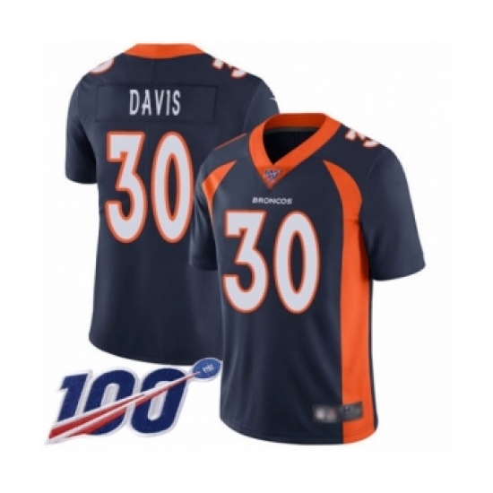 Men's Denver Broncos #30 Terrell Davis Navy Blue Alternate Vapor Untouchable Limited Player 100th Season Football Jersey