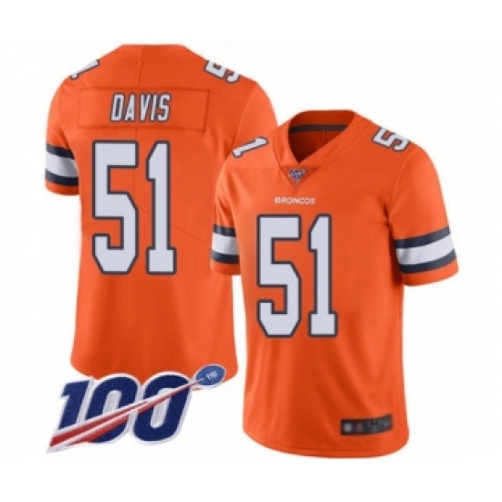>Men's Denver Broncos #51 Todd Davis Limited Orange Rush Vapor Untouchable 100th Season Football Jersey